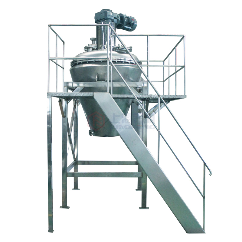 DMIX真空攪拌混合干燥機(jī)工作過(guò)程為批次操作,濕物料進(jìn)入料倉(cāng)后,利用夾套、攪拌加熱進(jìn)行干燥。通過(guò)選擇合適的單錐真空干燥機(jī)(工作容積)可以達(dá)到需求的處理量范圍,采用上驅(qū)動(dòng)式結(jié)構(gòu)的攪拌器與攪拌螺桿可分段拆裝,由于安裝空間充裕,適宜于GMP車間使用和進(jìn)行檢修維護(hù),同時(shí)單錐螺旋真空干燥機(jī)具有的高效干燥混合能力是雙錐真空干燥機(jī)的3-4倍, 物料裝填率在10%-99%可正常工作,懸臂螺桿攪拌可以達(dá)到較高的混合精度,在大批物料中添加很少量物料這樣的苛刻條件下也可以在干燥機(jī)內(nèi)混合均勻,由與其與眾不同的溫和攪拌的特性,即使對(duì)干燥處理敏感的產(chǎn)品,也不會(huì)遭損壞,所需的驅(qū)動(dòng)功率卻相對(duì)很低。本干燥機(jī)的高真空設(shè)計(jì)對(duì)干燥溫度敏感的產(chǎn)品來(lái)說(shuō)其優(yōu)勢(shì)十分明顯,并具有良好的熱傳導(dǎo)能力、和快速干燥,同時(shí)、又兼具低耗能的特點(diǎn)。與干燥機(jī)直接相連的過(guò)濾器能夠?qū)m粒保留在加工區(qū)域內(nèi),本機(jī)采用充氣密封半球閥,卸料干凈、便捷,出色的真空、耐壓密封性能, 無(wú)死角、易清潔設(shè)計(jì),性能穩(wěn)定、使用壽命長(zhǎng),從而保證您能夠無(wú)損失地繼續(xù)加工產(chǎn)品。這樣一種多用途干燥/混合設(shè)備是您解決生產(chǎn)需求的理想裝備。