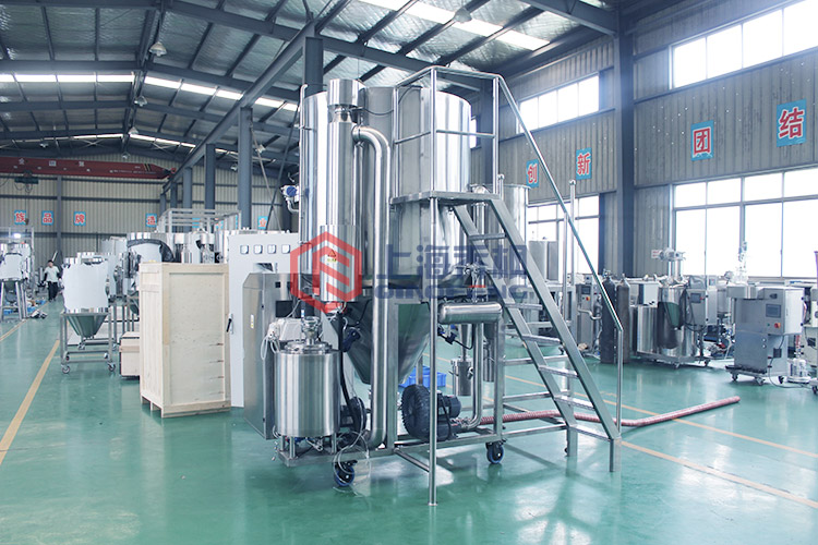 為了防止材料受到污染并延長設備的使用壽命,與材料接觸的所有部件均由不銹鋼制成。 噴涂后,液體霧化成分散的顆粒,表面積大大增加。 在與熱空氣接觸后,干燥過程可以在很短的時間內完成。 在正常條件下,100%至98%的水可在100至150℃下蒸發1至3秒。 由于干燥過程在瞬間完成,因此最終產品的顆粒可以基本上保持與液滴類似的球形,從而具有良好的分散性,優異的可沖泡性和高溶解性。