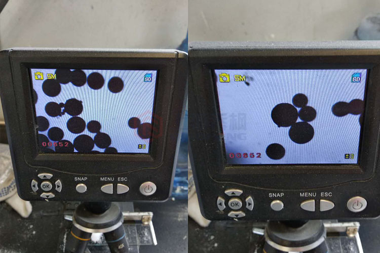 陶瓷粉混料噴霧干燥實驗結果物料在顯微鏡下面的效果